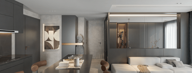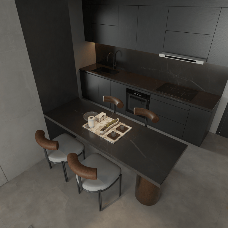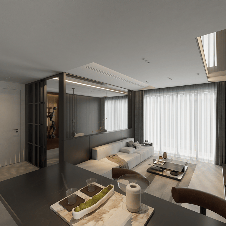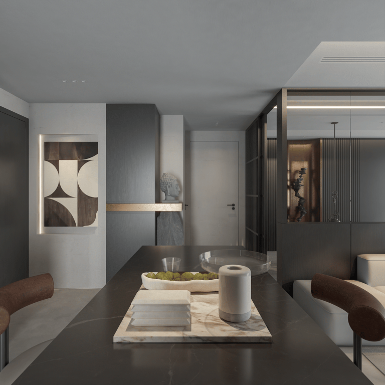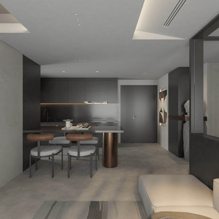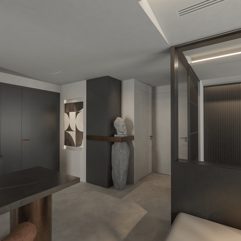 This apartment was built around stillness. The brief was simple — create a home that slows you down the moment you step inside. Every room was planned to support a life of presence: minimal clutter, considered materiality, and spaces that breathe.