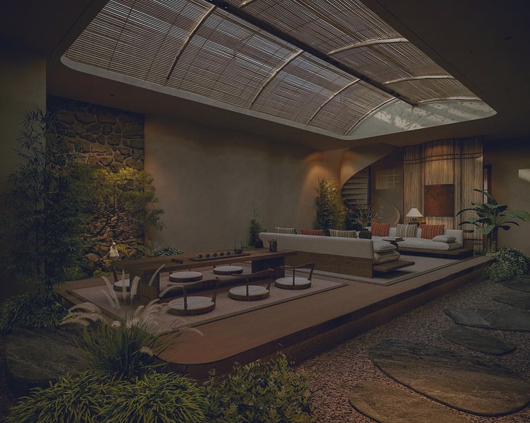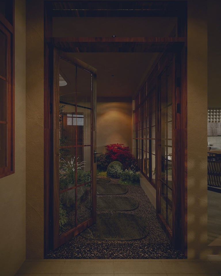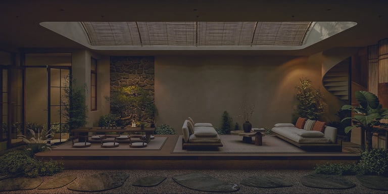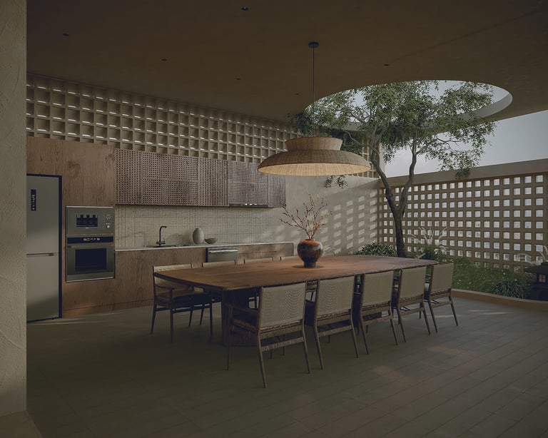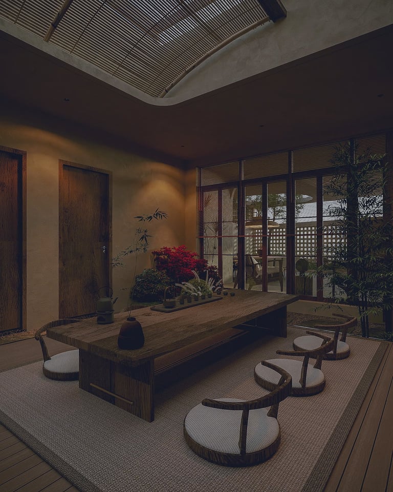The Wabi-Sabi spirit runs throughout. Nothing is precious, yet everything is considered. Wide terraces, an open kitchen, and flowing communal spaces were designed around the natural rhythm of family gathering — where grandparents and grandchildren occupy the same space without effort.
