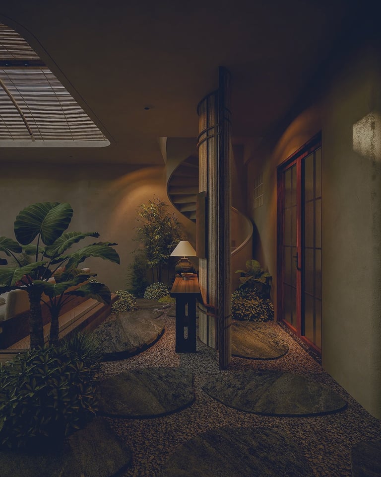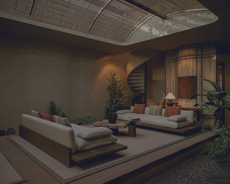 Sitting along the Mũi Né coastline, this residence was built entirely from local materials — rattan, raw timber, woven bamboo, and hand-laid terracotta — chosen because they carry the memory of the place and age beautifully with the family inside.